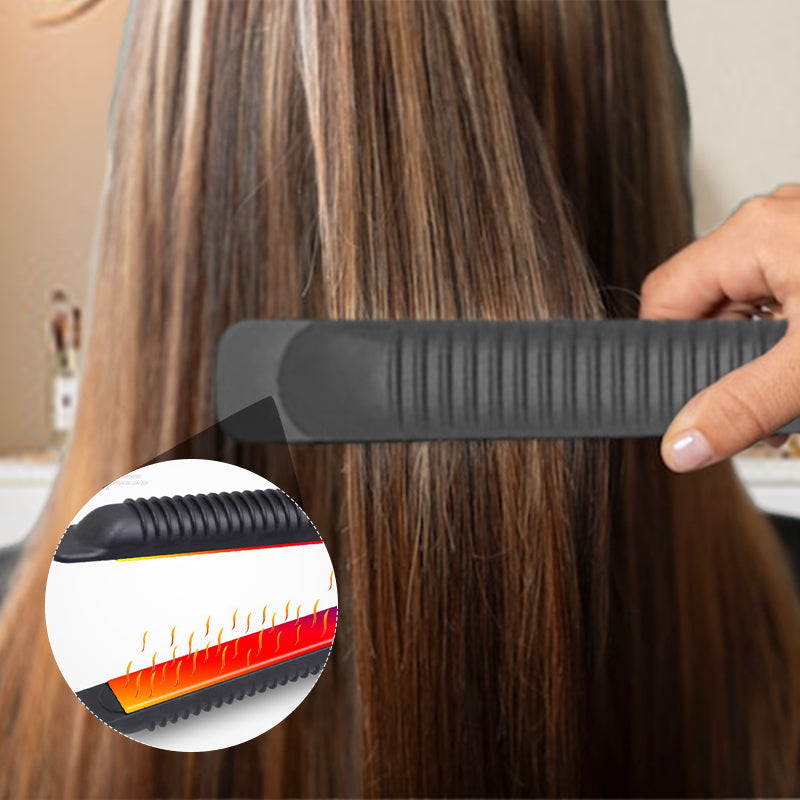 SAFETY FEATURES - Equipped with a heat-resistant top, allowing safe hand pressure during styling without burns, enhancing both safety and aesthetic appeal.