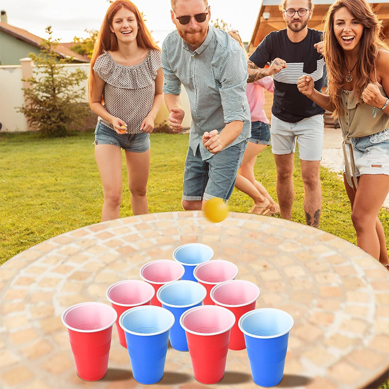 VIBRANT COLORS, UNBEATABLE DURABILITY – Crafted from tough ABS plastic, these cups resist cracks and spills. Bold red, blue, or classic white balls pop against any backdrop, keeping the game lively and visible even in dim-lit basements or backyard parties.