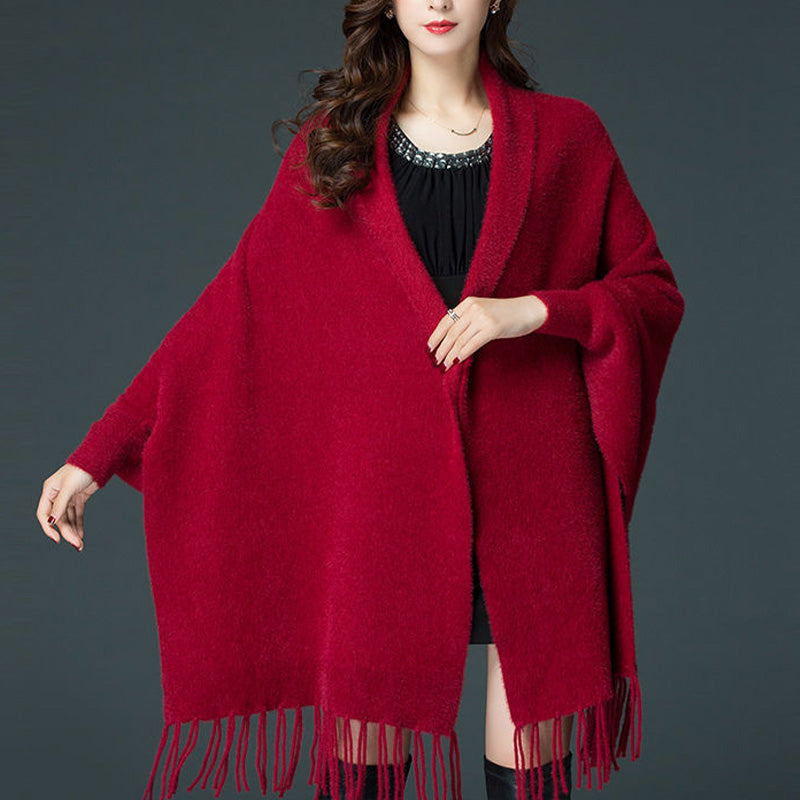 OPEN FRONT DESIGN AND SOLID COLOR: This poncho shawl coat features a chic open front and a timeless solid color. The open design allows for easy layering over various outfits, while the solid hue adds a classic touch that complements any wardrobe.