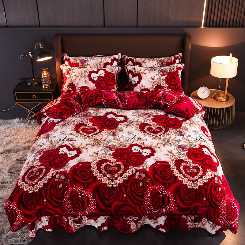 Package Includes: 1 * 4 Piece Print Cozy Comforter Bedding Sets