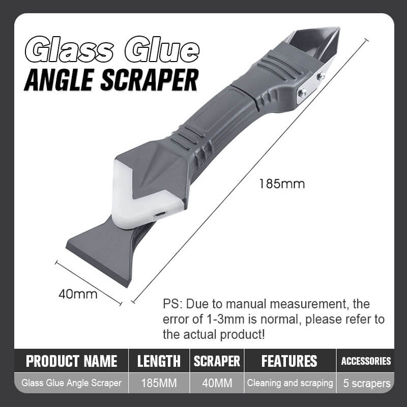 - 1. Glass Glue Angle Scraper (Plastic / Metal) x 1pc + Scraper Heads x 5pcs