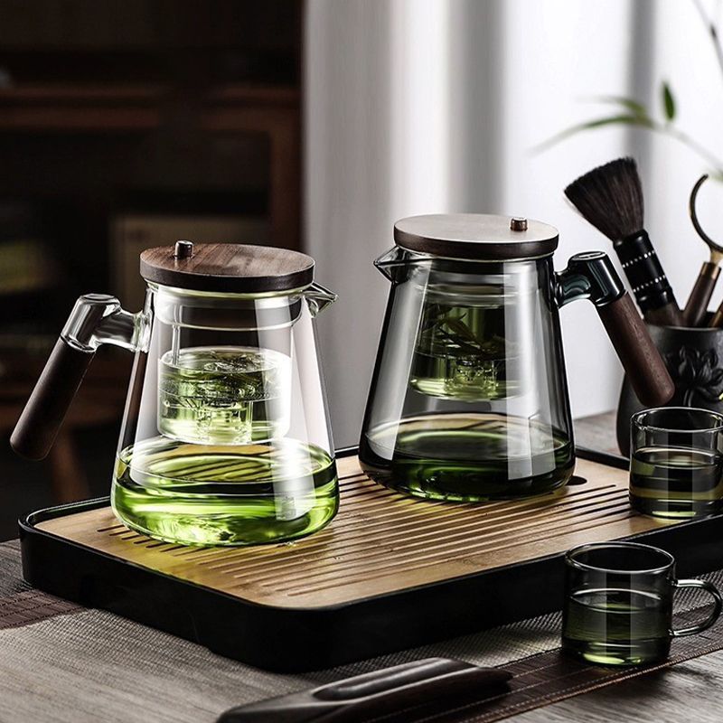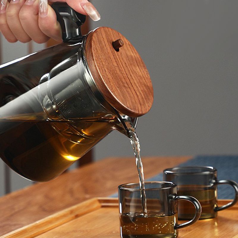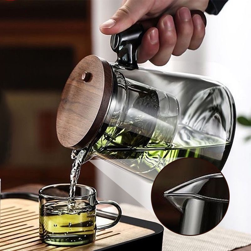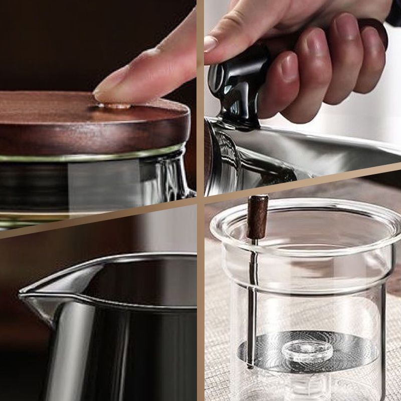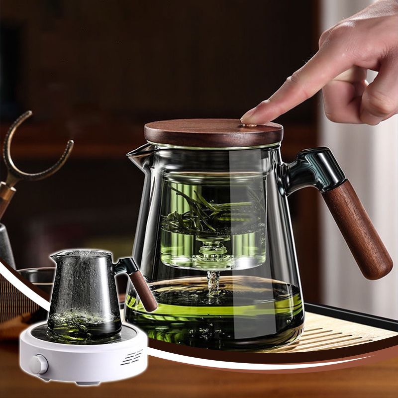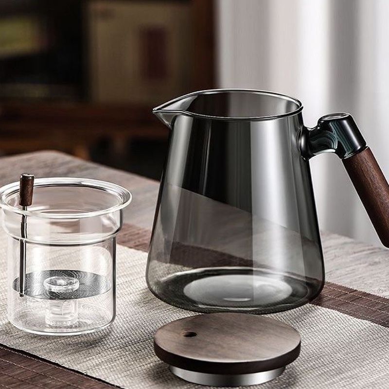 Material: Heat-resistant glass, wooden handle and lid.