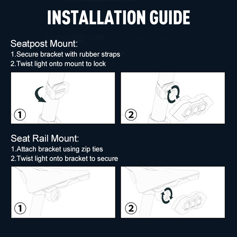 QUICK INSTALLATION: Supports multiple mounting positions such as seatpost and seat rail, designed for easy attachment and removal without extra tools, offering flexible and secure setup.